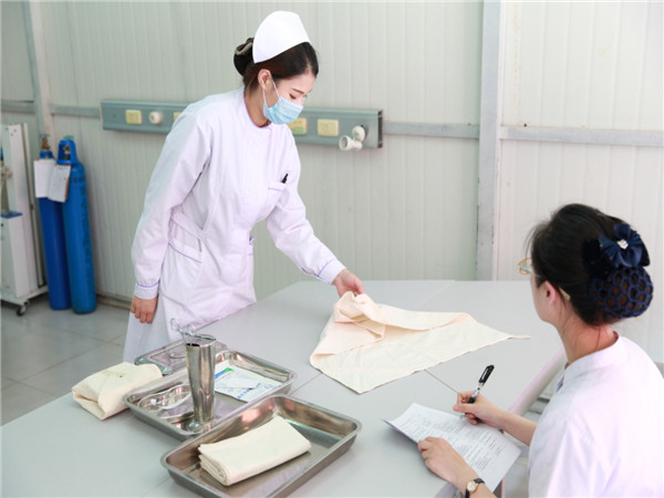 第二天婁金蘭老師、馬憲云老師對學(xué)生進(jìn)行了為期一天的技能考核包擴(kuò):靜脈輸液、生命體征、無菌操作等。孩子們整齊的服裝,嫻熟的操作,充分體現(xiàn)了學(xué)校素質(zhì)教育的成果。