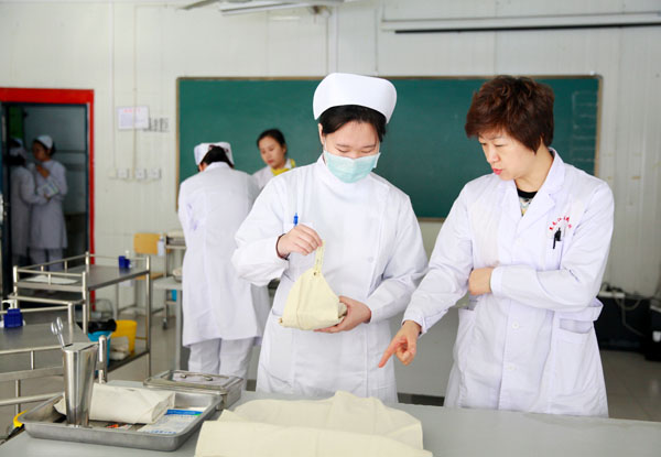 2015級(jí)護(hù)理專(zhuān)業(yè)學(xué)生崗前考核分別在2月27日、28日進(jìn)行,由我校領(lǐng)導(dǎo)組織6名任課教師共同參與,對(duì)同學(xué)們進(jìn)行逐一的考核??己吮局焦?,讓學(xué)生信服的原則,重點(diǎn)考查學(xué)生無(wú)菌技術(shù)和皮內(nèi)注射的操作流程。除此之外,還有試敏液的配制方法、生命體征測(cè)量的正常值等內(nèi)容,考核內(nèi)容全面,并且有針對(duì)性,注重學(xué)生操作的細(xì)節(jié)考查。