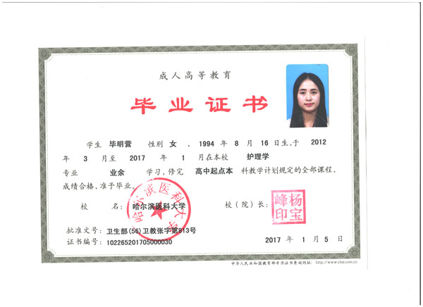 學(xué)生完成學(xué)業(yè)且符合各項(xiàng)相應(yīng)條件的,由哈爾濱醫(yī)科大學(xué)頒發(fā)本科畢業(yè)證書,通過學(xué)位英語考試后由哈爾濱醫(yī)科大學(xué)授予學(xué)士學(xué)位。